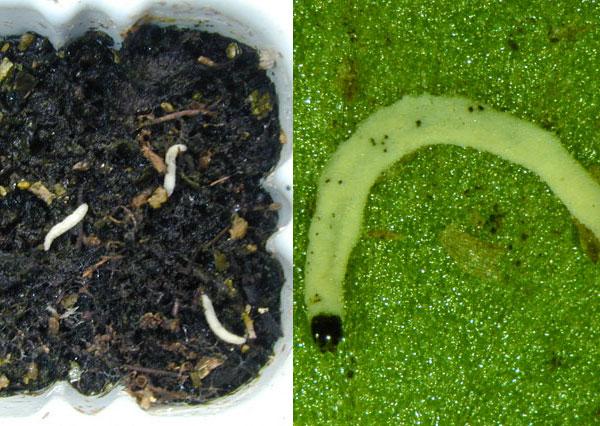 - Sciarid larvae can be monitored by examining the compost surface, around the roots and inside the pot after tapping out the plant.