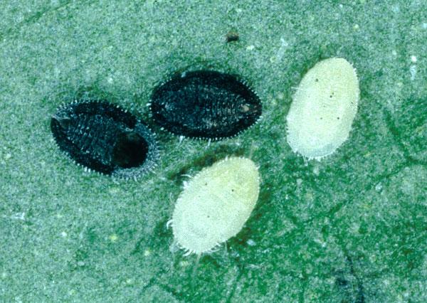 Unparasitised glasshouse whitefly ‘pupa’ scales (white) and those parasitised by Encarsia formosa (black)
